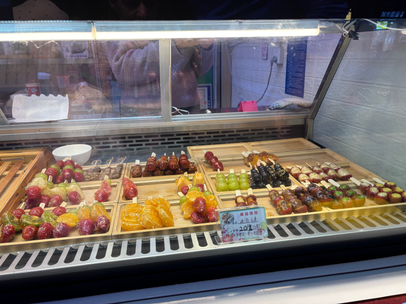 In Xizhou, we also walked through the town square where we saw loads of stalls selling a variety teas, especially a flower tea that was in season. And, then also this fried cheese. We had to try that.