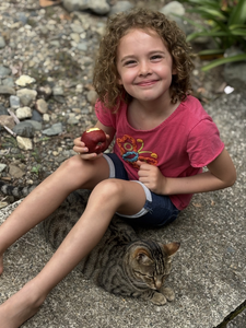 And we met our house cat, Roz. She came with the house we are staying in, and so they asked us if we could take care of her. It was a dream come true for the kids who can’t have a cat at home since Tom is allergic. But Roz is an outdoor cat, so it’s perfect. The kids were instantly in love and really Roz is actually one of the coolest cats I’ve known. Even Tom even goes out to hang out on the porch with her.