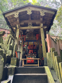 Then we entered the park and walked for about two miles before we saw even one person. It was lovely. We took a rest at a secluded shine with small red torii gates.