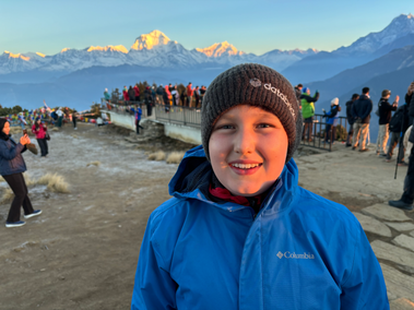 We stopped for lunch and had some dal bhat. Other hikers come by to tell the kids that they saw them at the summit of Poon Hill at sunrise and were proud of them. So were we!