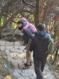 We made it to Tadapani completely exhausted, except for Lucy who was chatting with Ethan the whole time. We changed our clothes and rested in the dining hall by playing cards and reading books by the wood fire.