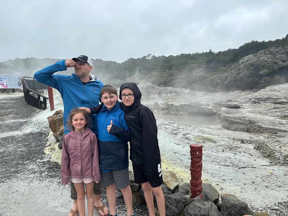One thing that Rotorua is known for is the geothermal activity in the area. Driving around, you can see random areas where steam is rising, especially after rain. That and the smell of sulphur.